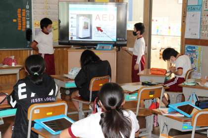 4年生総合発表会 公開日 2021/11/02 更新日 2021/11/02 お知らせ こちらも昨日の記事となります。4年生の総合学習の発表会です。「防災」について、各ペアで学んできたことを発表し、学級で共有する場面でした。 タブレットPCを使って分かりやすくまとめ、みんなが聞きやすい声で発表することができました。