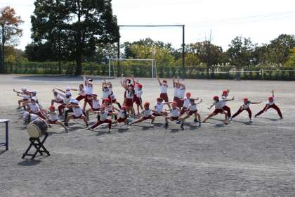 今日の運動会に向けての活動の様子です。3・4年生の「ソーラン」の決めポーズの練習です。集団の一体感とコロナ対策の双方を考え、全体のバランスとカッコよさを踏まえて考えています。