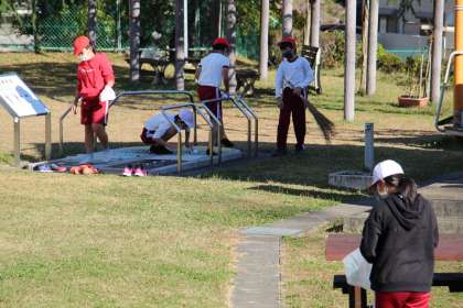 昨日の話題になります。6日(土)の石畳朝市に出品予定の6年生とあすなろ学級の児童が、朝市の会場となる足湯や石畳ふれあい広場の清掃活動を行いました。