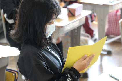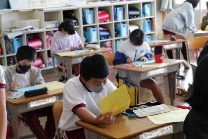 4年生は、運動会の招待状を作っていました。慣れない手つきで、一生懸命作る姿は、とても微笑ましいものでした。