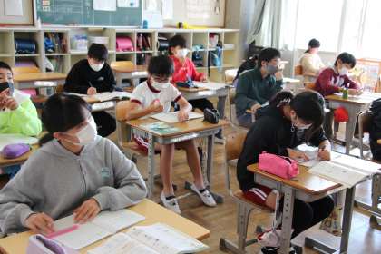 5年生は単元テストです。3年生は、テスト返しでした。テストは、終わってからが大切なので、しっかり復習をしていました。