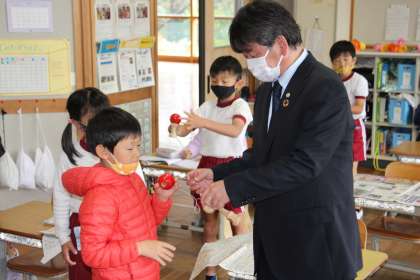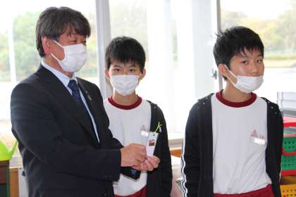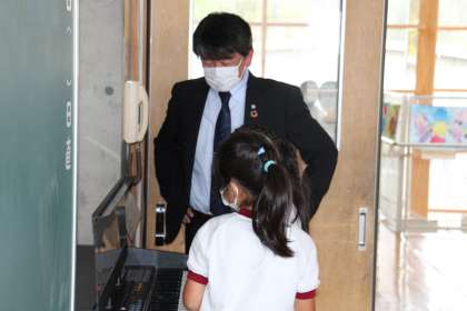教育長訪問 公開日 2021/11/09 更新日 2021/11/09 お知らせ 本日、教育長が本校を訪問されました。授業を見ていただく予定でしたが、すぐに長放課になり、子どもたちと交流する場面もありました。 授業中よりも、自由にお話しできる時間であったので、より楽しく、より深く交流することができました。