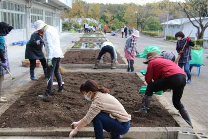 いしぼら 公開日 2021/11/10 更新日 2021/11/10 お知らせ 本日、いしぼら(花壇ボランティア)の方々が来校し、花壇の整備をしてくださいました。運動会を今週末に控え、文字通り花を添えてくださり、感謝感謝です! せっかくですので、本日は活動後に皆さんで集合写真を撮らせていただきました。少しの時間だったので、マスクをとってもらい、記念撮影を行いました。