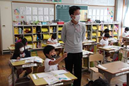 算数の授業 公開日 2021/11/12 更新日 2021/11/12 お知らせ 1・2年生の算数の授業の様子です。1年生は基本となる足し算です。6にいくつ足すと10になるかな…そこにあまりの数を足してなど、答えが2桁になる足し算の勉強をしました。 2年生は、九九の特訓です。ペアで聞き合いながら、本日はとてもスピーディーに唱えていました。