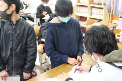 6年生の授業 公開日 2021/11/15 更新日 2021/11/15 お知らせ 6年生の授業の様子です。算数の表とグラフの問題を担任が確認し、できたら次に進めます。時々、このように個別支援を行っています。 国語の授業は、「ヒロシマのうた」です。この単元の授業では、いつもピリッとした緊張感があるように思います。