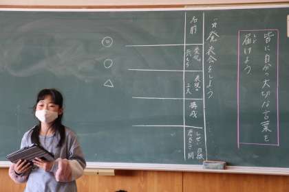 今日の様子(11/15) 公開日 2021/11/15 更新日 2021/11/15 お知らせ 今日の授業の様子です。5年生は、「自分の大切な言葉」の発表会でした。話すことと伝えることの違いがわかるといいですね。 3年生では、早速「運動会ビデオ」を視聴し、みんな笑顔で応えてくれました。いい顔を見ることができて、幸せです!