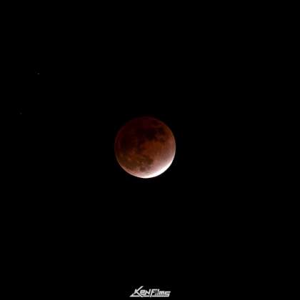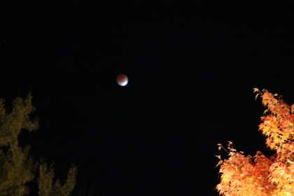 さて、その息子から月食の写真が送られてきたので、合わせて紹介します。石畳ふれあい広場の1枚と合わせてお楽しみください。