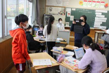 授業の様子(11/26) 公開日 2021/11/29 更新日 2021/11/29 お知らせ この記事は、金曜日のものになります。書写ボランティアとして地域にお住いの先生が、指導に来てくださいました。職員室横には、その先生の作品が飾ってあるくらい著名な方に指導してもらっています。 5年生は英語の研究授業でした。多くの先生に見守られ、子どもたち以上に担任が緊張していた様子でした。6年生は、コロナのためにストップしていた調理実習です。安全に配慮したうえで進めていきたいと考えています。