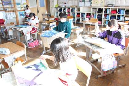 読書感想画は、どの学年も完成に近づいています。今回は、3・4・5年生の様子をお知らせします。