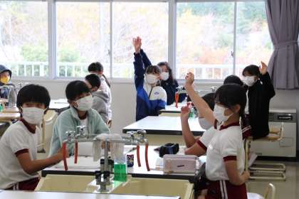 4年生理科 公開日 2021/12/01 更新日 2021/12/01 お知らせ 4年生は理科の実験をして、実験からわかったことを話し合いました。試験官に石鹸水を入れて膜を作り、温度によってどう変化するかについて考えました。 見た目の変化だけでなく「ぷしゅっと音がした」など、五感を使って考えることができました。