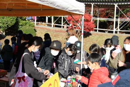 石畳朝市 公開日 2021/12/04 更新日 2021/12/04 お知らせ 本日は、第一土曜日恒例の「石畳朝市」があり、6年生とあすくす学級が出店しました。 6年生は、ビンゴやスーパーボール落とし、ペンギンづくりを行いました。あすくす学級は、リースや缶バッチ、しおり等の販売をしました。多くの人に来店してもらい、とても賑やかなブースで、大盛況でした。