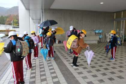 雨の日の登校 公開日 2021/12/07 更新日 2021/12/07 お知らせ 今日はあいにくの雨でしたが、子どもたちは元気に登校しました。 昇降口前で傘の水を切って、傘立てが水浸しにならないようにしています。シューズに履き替えたところで、高学年の児童があいさつをしながらお出迎えです。 天気は悪いですが、ほっこりいい雰囲気で1日がスタートできそうです。
