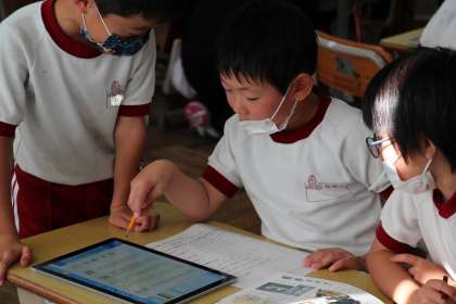 本時のメインは、グループでのアドバイスです。タブレットPCを上手に使って、いい話し合いができました。
