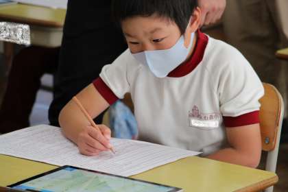 授業の終わりには、しっかり振り返りもできました。研究授業ということもあり、多くの参観者がありましたが、いつも通り、堂々と授業に参加しました。