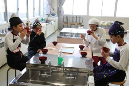 6年生の授業の様子です。今日の家庭科は、味噌汁づくりでした。味噌汁を適度に煮たものと煮込みすぎたものの味の違いや、各家庭での味噌汁の味の違いなど確かめ合いました。「家庭の味」というものがあることに気付いた子が多かったのではないでしょうか。