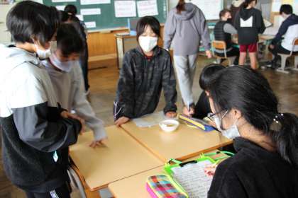 招待状を受け取った6年生や教職員をお客様にして、接客をすることができました。本物の料理こそ出ませんでしたが、手作りの食品サンプルを準備した班もありました。
