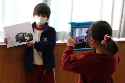 1年生動画づくり 公開日 2021/12/22 更新日 2021/12/22 お知らせ 1年生の国語「紹介動画を撮ろう」の授業の様子です。各自が紹介したい「はたらく車」のまとめを動画に撮りました。 紹介する絵や写真を見せることはもちろん、紹介者の視線がポイントになりますが、よくがんばっていました。