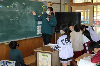 4年生の算数は、少数の割り算です。小数点が出てきて、さっと割り切れないと難易度が跳ね上がります。本時は、よくわからない子に対しての集中講義(?)を行いました。