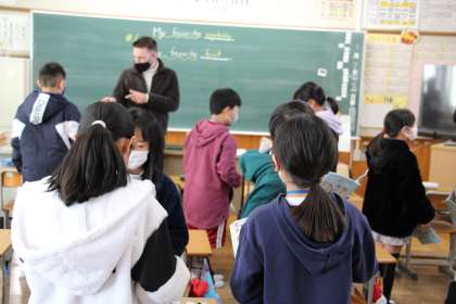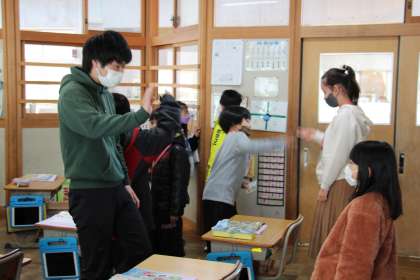 本日の授業は、書き初めが中心になりますが、各授業も再開しました。本日がALT来校日でしたので、3・4年生はさっそく英語の授業がありました。