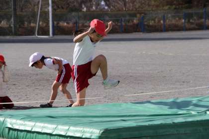 両足を巧みに使って跳ぶ、高く跳ぶために手を使って上方向に体を引き上げる、体を少し横にしてバーに平行にするなど、ポイントとなる動きが見られました。