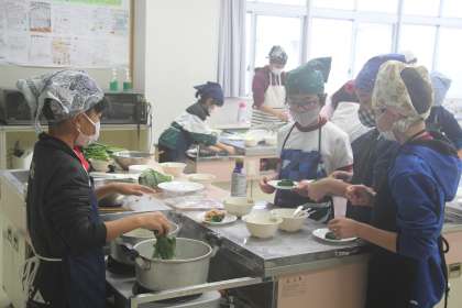 5・6年生の家庭科「調理実習」の様子をお伝えします。5年生は、ゆで野菜でおひたしを作りました。6年生は、おひたしに卵料理を加えて作りました。