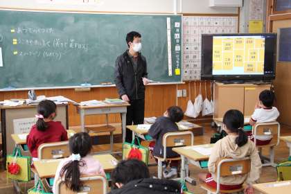 1年生は、明日の「そり体験」に向けての事前指導です。安全と健康とコロナ対策など、多くのことに注意しなければいけないので、しっかり話を聴くことができました。