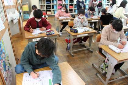 3年生は、詩の授業です。心に浮かんだことを、どう表現するかがポイントです。4年生は、へんやつくりの学習です。将来「漢字検定」に挑戦する子もいるかと思いますが、必ずこういった問題が出てきます。