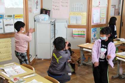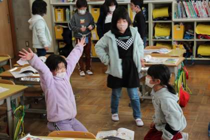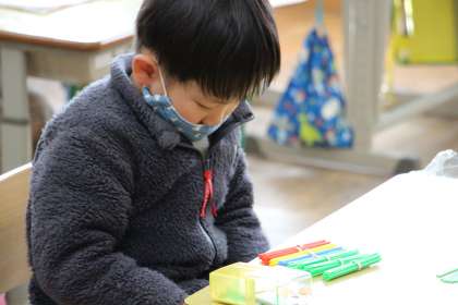 音楽では、曲に合わせた振付を考えました。グループで協力し、実際に体を動かしながら活動しました。また、算数では算数セットの数え棒を使って、より具体的に考えました。