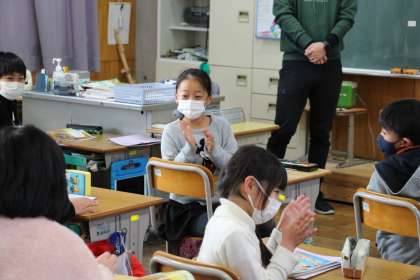 3年生英語 公開日 2022/01/21 更新日 2022/01/21 お知らせ 3年生の英語の授業の様子をお知らせします。「Who are you?」をクイズ形式で行いました。 先生や児童が出すヒントをもとに、それはいったい誰のことなのかを当てる内容でした。見事正解だったときは、温かい拍手が送られました。