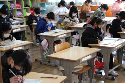 知能テスト 公開日 2022/01/26 更新日 2022/01/26 お知らせ 本日から来週の月曜日にかけて、知能テストと学力テストを行います。現在、1・3・5年生が知能テストを行っているので、その様子をお知らせします。 知能テストは、決まった時間の中でどれだけの問題が解けるかを測定するものです。問題の解き方が分かることが前提になるので、練習問題を通してしっかり説明し、子どもが理解していることを確認して進めています。