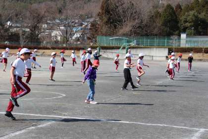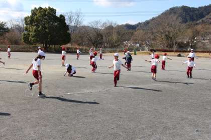 1・2年生合同体育 公開日 2022/02/01 更新日 2022/02/01 お知らせ 1・2年生の合同体育「縄跳び」の授業の様子をお知らせします。 雲一つない暖かな日ということもあり、みんな元気よく活動しました。一斉に技を変えて跳んだり、先生のペースに合わせて跳んだり、1年生と2年生のペアで真似っこしたりと、楽しみながら課題を克服しました。