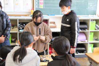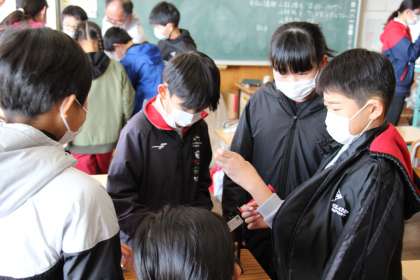 本日は、あすくす学級の児童が5年生に作り方を伝授しました。多くの子がかかわることで、「WE LOVE 石畳」の気持ちがより膨らむことを期待しています。
