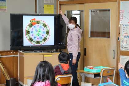 旬な話題2(2年生) 公開日 2022/02/03 更新日 2022/02/03 お知らせ 今日の2年生の様子をお知らせします。本日は節分です。節分の日に恵方を向き、恵方巻を丸かぶりすると縁起がいいとされています。もともと、関西から始まったようですが、一本丸ごと黙って食べる点は、コロナ禍においてもバッチリです。 せっかくなので、方角の図を使って、恵方に当たる「北北西」等、方角についても学びました。