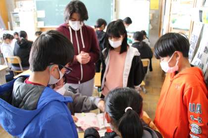 総合(石っ子)学習の様子 公開日 2022/02/04 更新日 2022/02/04 お知らせ 昨日に記事になります。総合学習の様子をお知らせします。 3年生は「ボッチャ体験会」、5年生は「卒業を祝う会」に向けて準備を進めています。 6年生は「石畳活性化計画」を考えています。本校で作成中の「WE LOVE 石畳缶バッチ」も、石畳活性化をねらいとしています。
