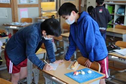 5年生図工 公開日 2022/02/07 更新日 2022/02/07 お知らせ 5年生の図工「あんなところがこんなところに見えてきた」の授業の様子です。 紙粘土で作ったキャラクター(?)をいろいろの場所に置き、違った角度で見ることで見え方が違うことを確かめていました。
