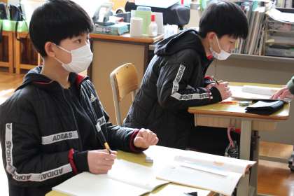 2、3枚目は、あすなろ学級の授業です。書写と算数の授業の様子です。いつもまっすぐな目で取り組んでいます。
