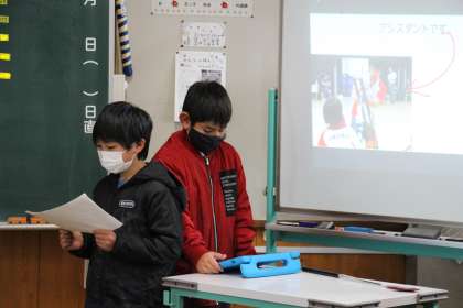 3年生学習発表会 公開日 2022/02/19 更新日 2022/02/19 お知らせ 3年生の発表は、「パラリンピックのリーフレット」でした。国語の授業で学んだパラリンピックから学びを深め、発表しました。