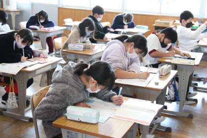 4年生の授業 公開日 2022/02/24 更新日 2022/02/24 お知らせ 4年生の授業の様子をお知らせします。書写の硬筆の様子です。ていねいに字を書くことが当たり前になると、自分の財産になると思います。上手い下手も大切ですが、「ていねいに」書いてほしいと思います。 3枚目は、卒業関連行事に向けての活動の様子です。