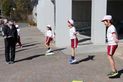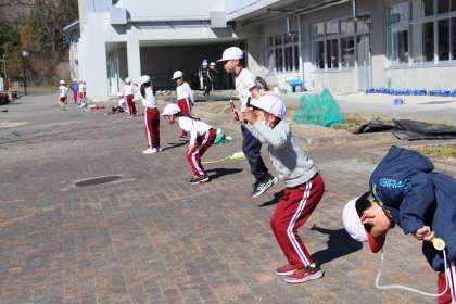 2年生の体育「縄跳び」の授業の様子をお知らせします。2年生になると縄跳びも上達して、いろいろな跳び方に挑戦しています。二重跳びを何度も跳ぶ子や三重跳びに挑戦する子もいました。