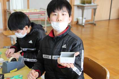 6年生の授業 公開日 2022/03/01 更新日 2022/03/01 お知らせ 6年生の授業の様子をお知らせします。あすなろ学級は算数の「立方体と直方体」の授業です。実際に模型を作って考えました。 2枚目は体育「サッカー」の授業です。カラーコーンを2本立て、その間を通す練習でした。3枚目は卒業を前に、「何か学校のためにできることはないか」の話し合いの場面です。私からも一つお願いをしました。