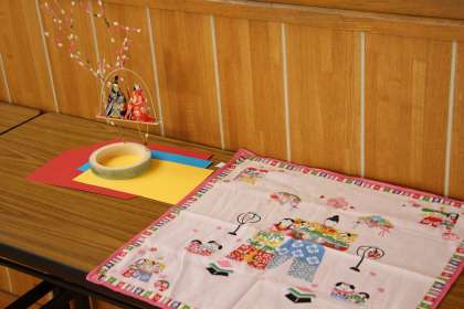 昨日紹介した飾りひなに風呂敷が添えられていました。とても優しく、いい感じだったので、再度ご紹介させていただきます。