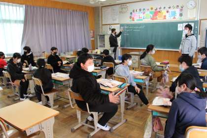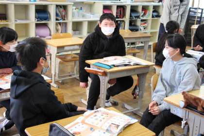 6年生外国語 公開日 2022/03/03 更新日 2022/03/03 お知らせ 6年生の外国語は「得意な教科」を質問し、答える英作文でした。質問の基本の言い回しを覚え、自分の得意教科を答えました。 私もALTから質問され、得意教科は「英語と数学」、苦手教科は「体育」と答えたところ、大笑いのリアクションが返ってきました。
