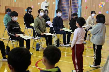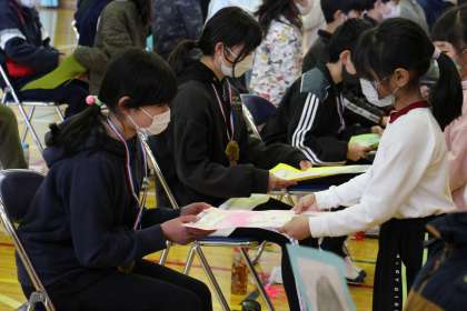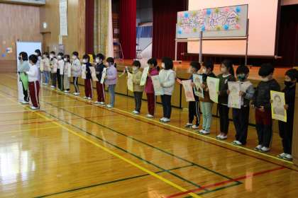 1年生の取組の様子です。1年生は似顔絵と手紙を渡しました。