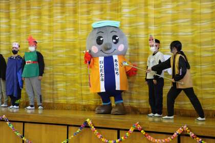 全校集会 公開日 2022/03/07 更新日 2022/03/07 お知らせ 本日の全校集会は、校長の話、表彰伝達に加え、「だたみんお披露目会」を行いました。足湯のキャラクター「だたみん」の誕生秘話を含め、6年生が劇にして発表しました。 1〜5年生の子どもたちは、発表の様子を真剣に聴くことができました。