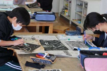 5年生図工 公開日 2022/03/17 更新日 2022/03/17 お知らせ 5年生の図工「版画」の授業の様子をお知らせします。 板を掘る活動、黒刷りをする活動、印刷した版画に色付けをする活動と行っていきます。 黒刷りの作品も味わいがありますが、色がつくと違ったよさを感じることができました。