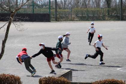 6年生は最後の授業としてお別れレクリエーションを行いました。みんなで運動場に出て、白熱した競技(レクの域を超えていました)が繰り広げられました。その後は、卒業式最終確認と通知表受け取りで6年生の授業は修了しました。