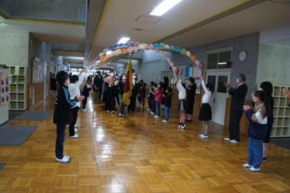 門送り 公開日 2022/03/18 更新日 2022/03/18 お知らせ 卒業式終了時は、小雨の状態でしたが、門送りは室内で行いました。本校は、廊下がとても広く、スペースが十分にあるので、外で行うのとそん色なく行うことができました。