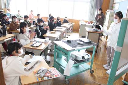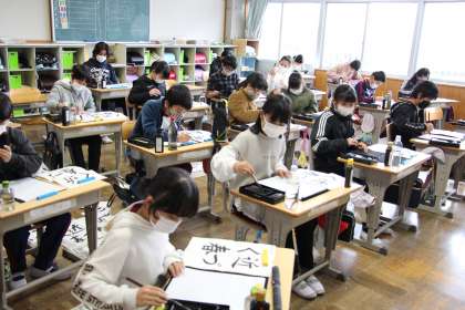 5年生の授業 公開日 2022/03/22 更新日 2022/03/22 お知らせ 5年生の授業の様子をお知らせします。 1枚目は書写の授業です。まさに今の様子を表す「近づく春」という字を書きました。 2・3枚目は、外国語の授業です。紹介文をスクリーンに映して、英語で説明をしました。話す側、聴く側、どちらもすばらしい態度でした。