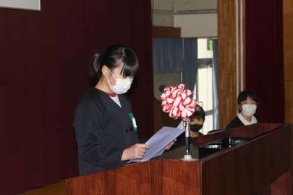 修了式3 公開日 2022/03/24 更新日 2022/03/24 お知らせ 修了式の中で、代表児童による意見発表を行いました。どの子も自分の考えがしっかり伝わるように、落ち着いて話すことができました。