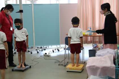 1年生の活動の様子をお知らせします。初めのうちは、学習の方法や日常の生活の仕方を教わる時間が多くなりますが、姿勢よく聴くことができます。また、本日身体計測を行い、身長と体重を測定しました。
